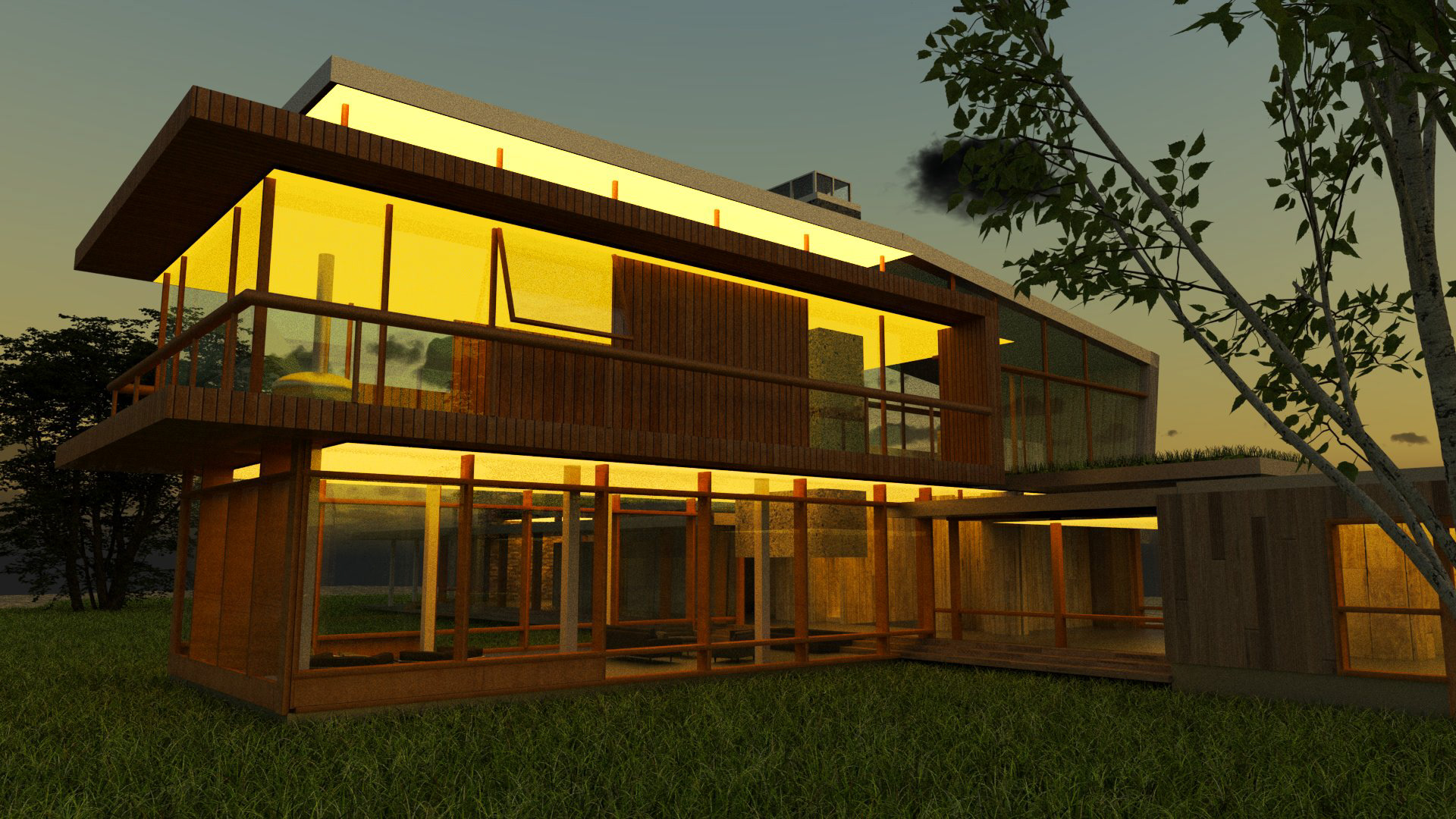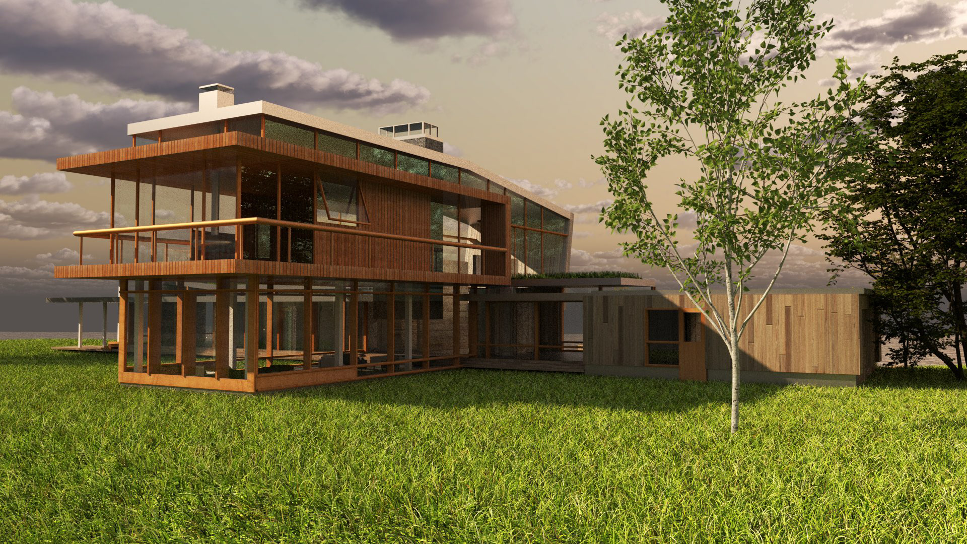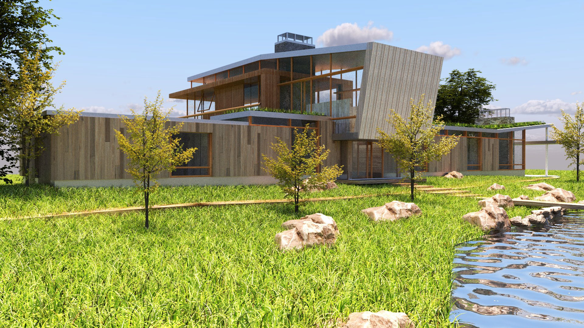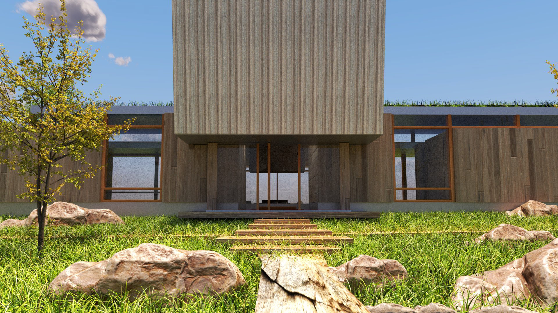 Using V-Ray and Grasshopper, the Montana House by HUUM was used as a case study to explore materiality, shape, sunlight, and form through Rhino modeling and rendering software.