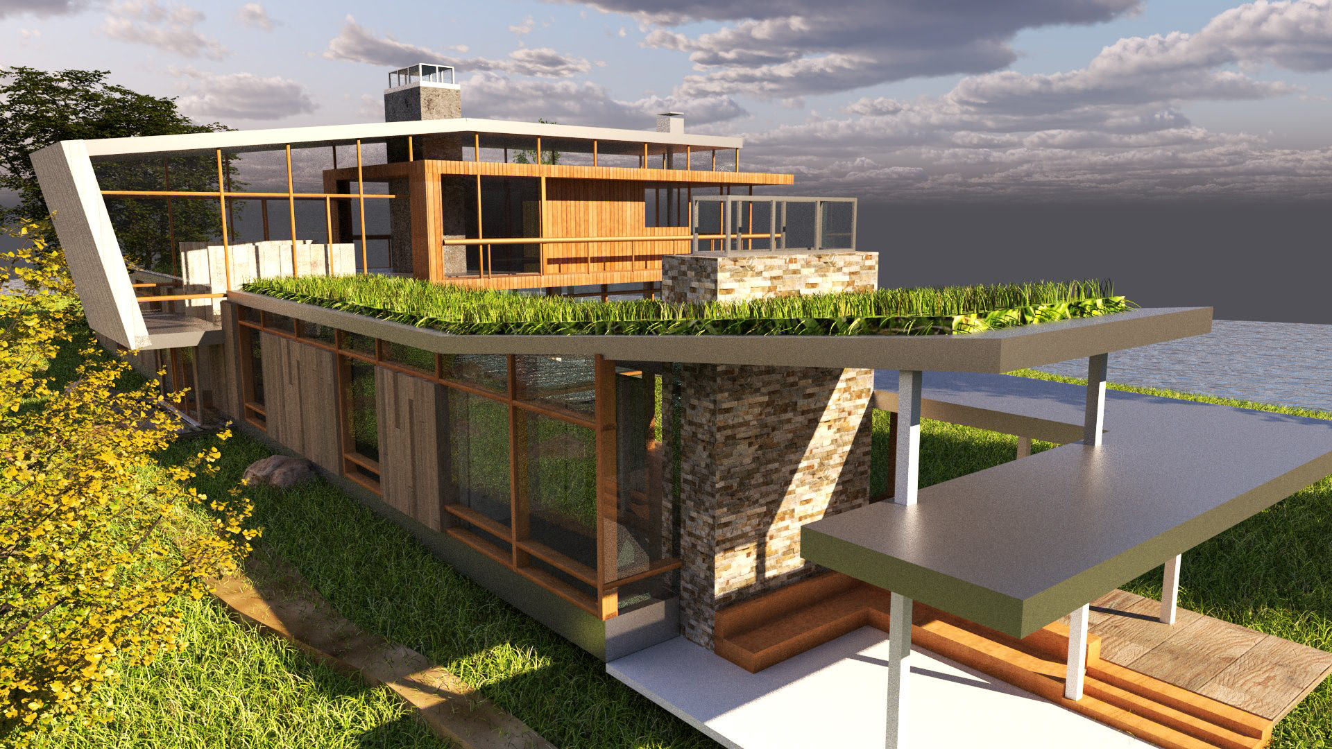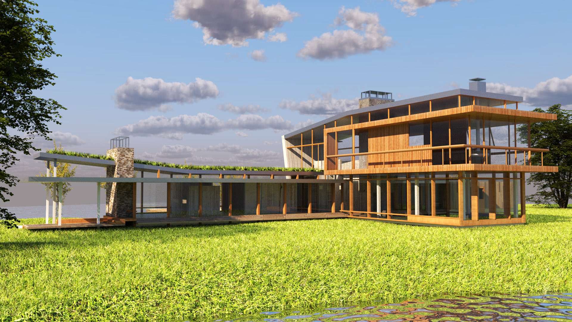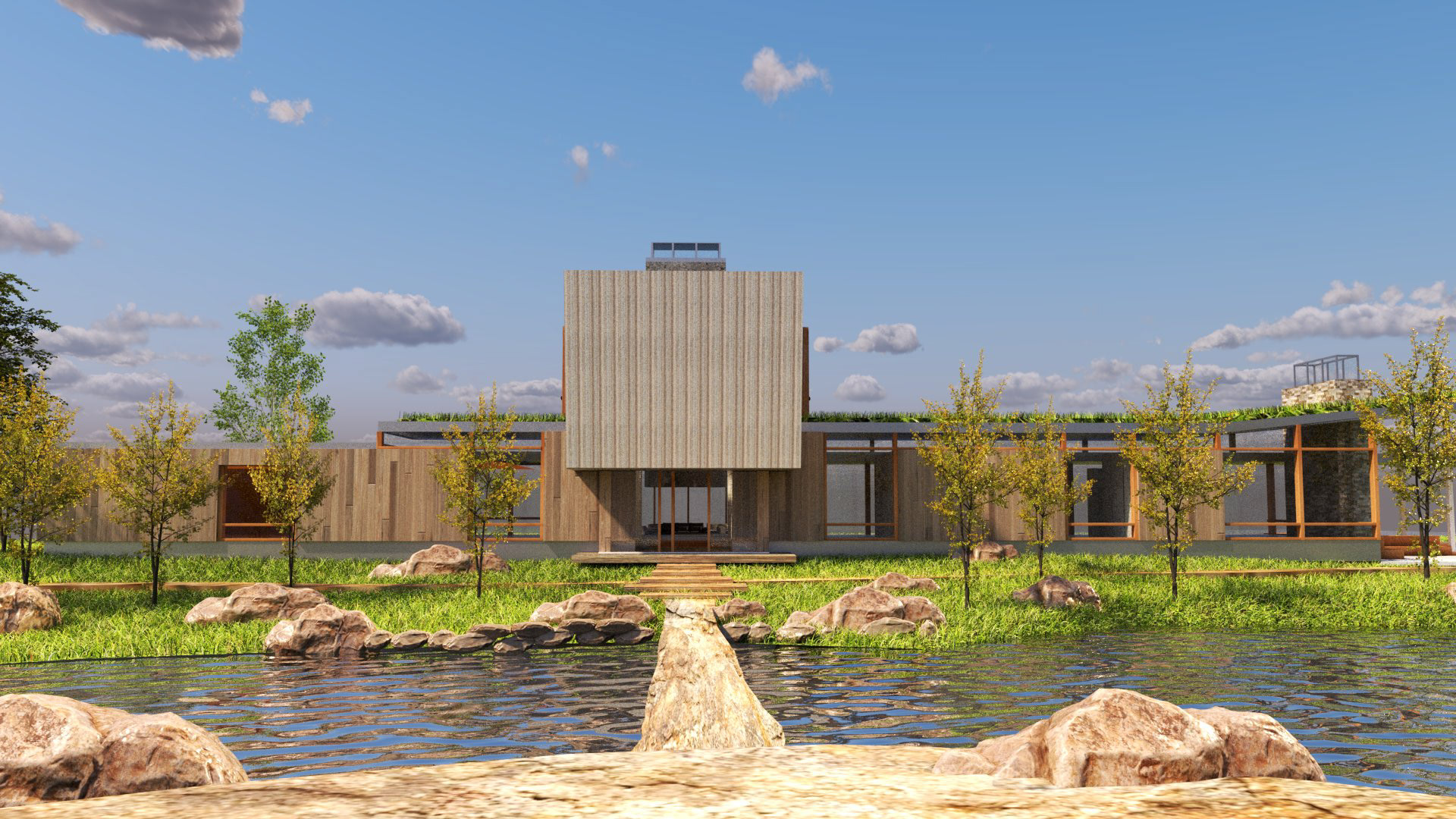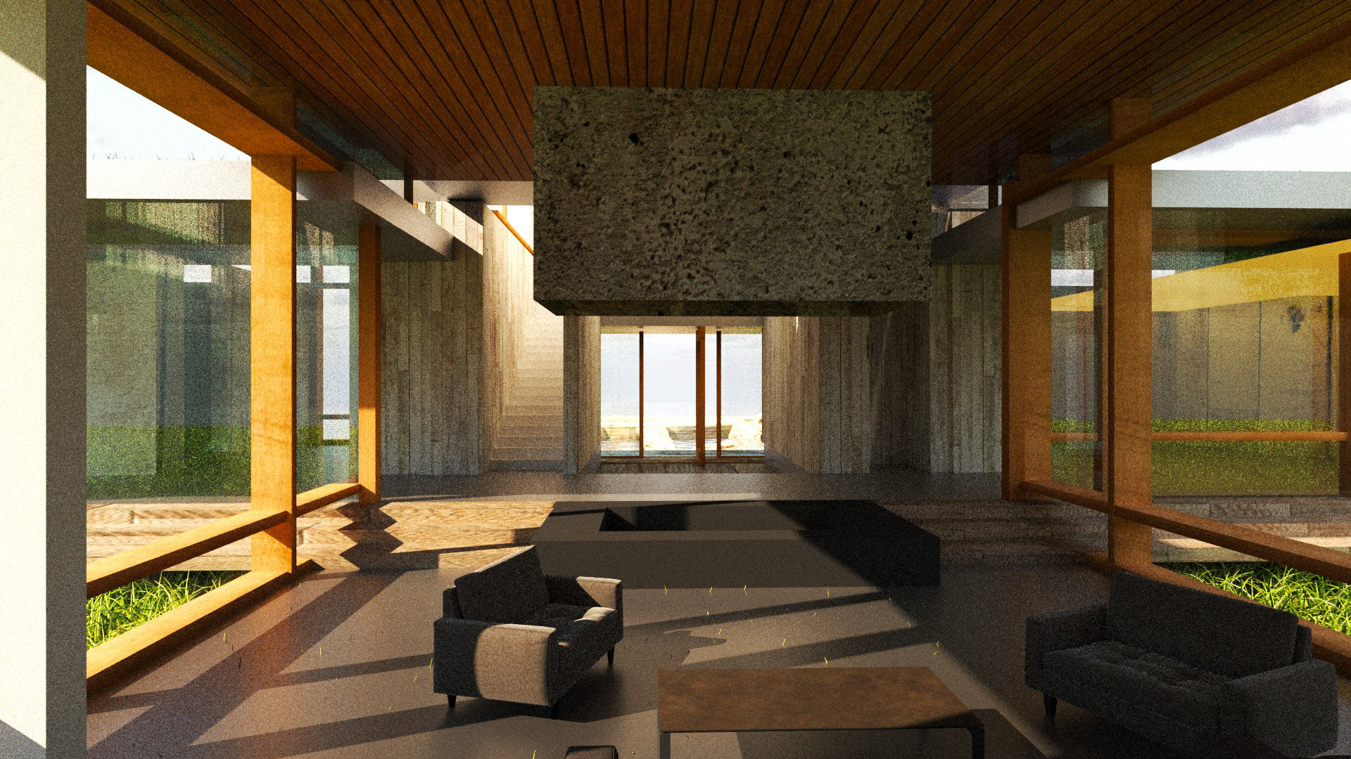 Using V-Ray and Grasshopper, the Montana House by HUUM was used as a case study to explore materiality, shape, sunlight, and form through Rhino modeling and rendering software.